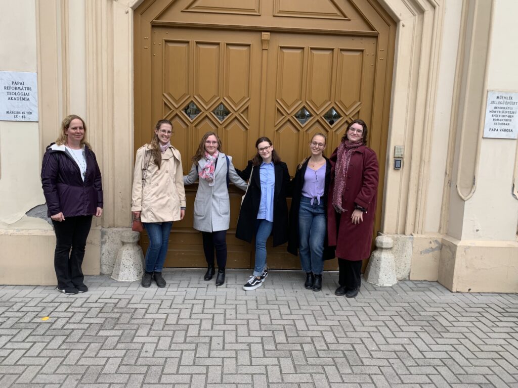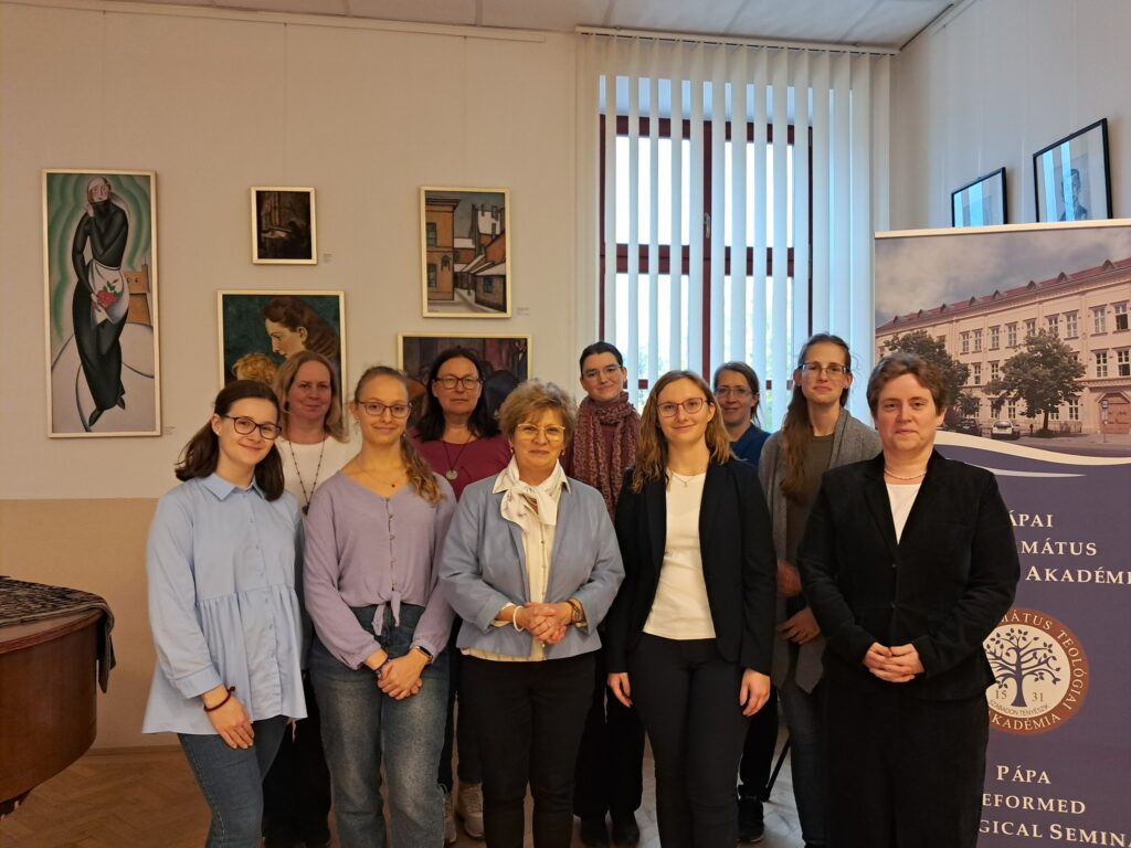 Péntek reggel Tatai Márta hallgatótársammal együtt tartottunk áhítatot, ahol a Debrecenből érkezett Mányi Viktória kántorizált. Aznap megtekintettük a pápai református intézményeket: a gimnáziumot, a könyvtárat, az újtemplomot, a püspöki hivatalt, valamint a Pannonia Reformata Múzeumot.