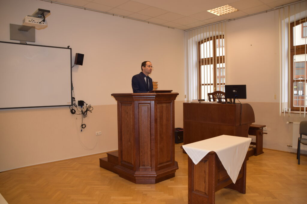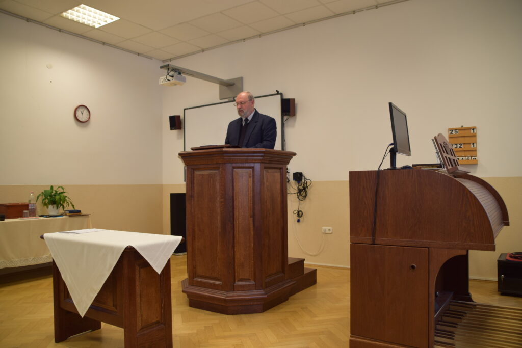 Ezen az első találkozón, ahogy az előzetes programban is meghirdetésre került, egy rövid kezdő áhítat után a PRTA oktatói – Dr. Nagy József docens úr és Dr. Németh Tamás professzor úr – tartottak elméleti alapvetést a presbiteri szolgálat összefüggéseit szem előtt tartva. Az első előadó elsősorban az újszövetségi gondolatmenet szerint – kiemelve ebben a Római levél 12. fejezetét – vezette végig a hallgatóságot a „mindig csak adni” gondolat és a (presbiteri) szolgálat összefüggéseire figyelve. A második előadó pedig a presbiteri szolgálat szépségét mutatta be számos személyes gyülekezeti tapasztalata, valamint a Szentírásból táplálkozó, igei megalapozottságú elméleti szempontok alapján.
